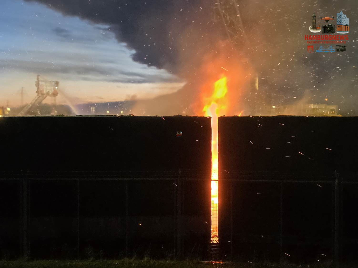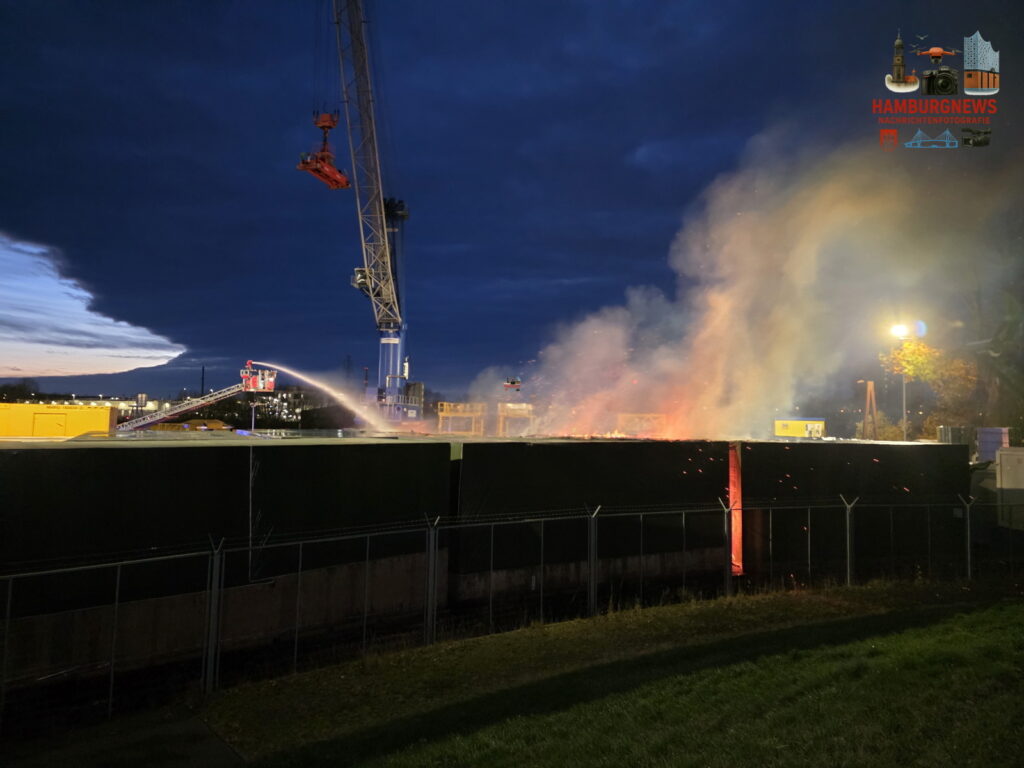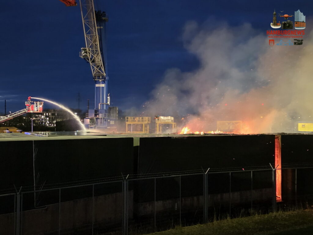 Die Feuerwehr wurde um 15:53 Uhr in den Pollhornweg gerufen. Auf dem Gelände einer Lagerei waren Holzkisten in Brand geraten. Das Feuer breitete sich auf weitere Kisten aus. Mit zwei Drehleitern sowie mehreren Strahlrohren vom Boden wurden die Flammen gelöscht. Die Feuerwehr gab 2. Alarm. Eine naheliegende Firma wurde aufgefordert die Arbeiten einzustellen, da der Rauch in die Hallen zog.